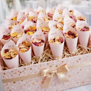 Hogy mennyi konfettire van szükség? A szárított konfetti, rózsaszirom vásárlása mindig nehéz kérdés, nehéz megbecsülni a mennyiséget. Ezért a nálunk kapható természetes konfettit sziromszóró tölcsérenként számoljuk. Ha nem szeretnétek minden vendégnek adni tölcsért, segítünk!